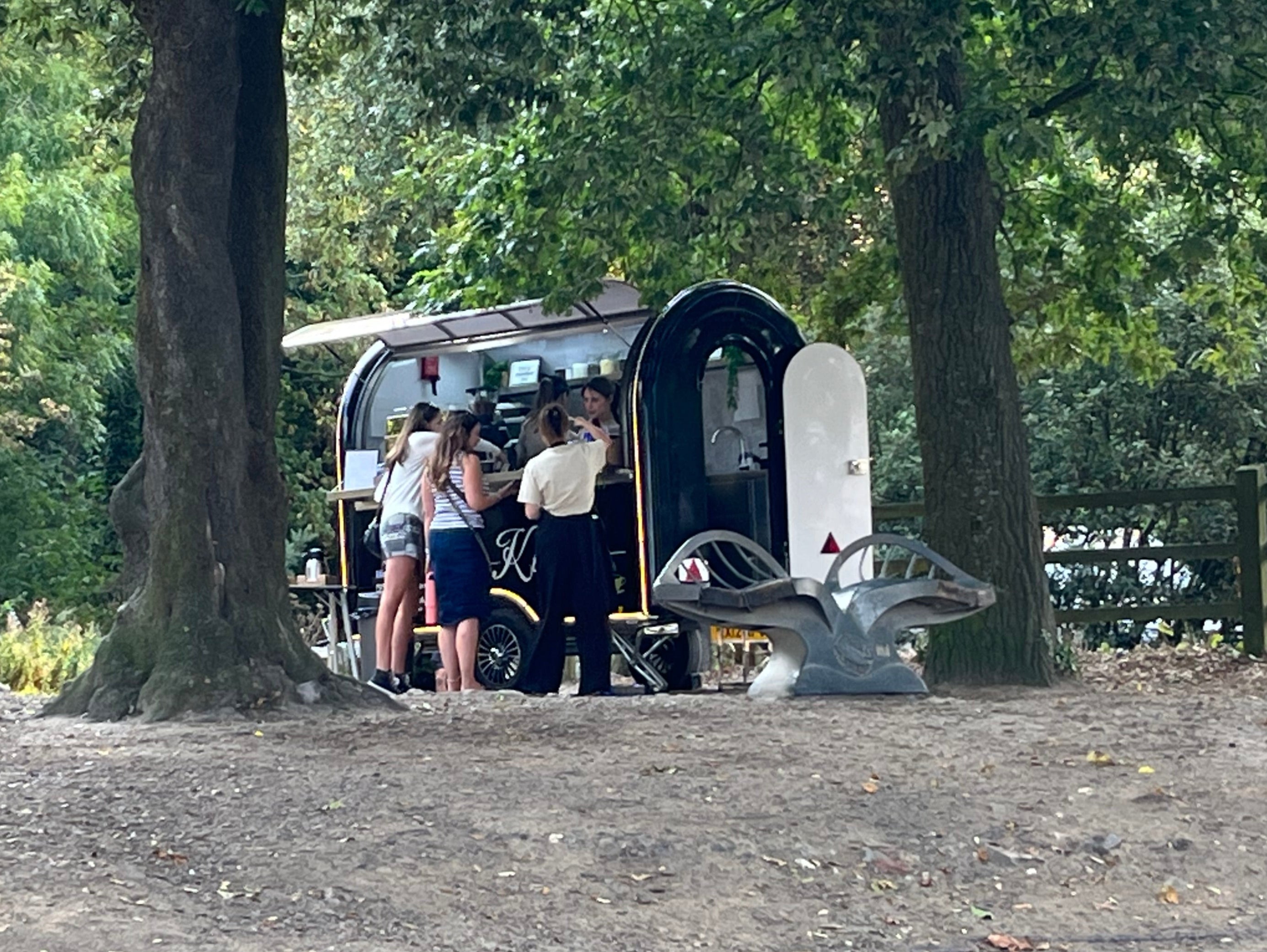 Barista served Coffee, Deluxe Hot Chocolates, Chai, Matcha and a variety of small snacks and cold drinks.